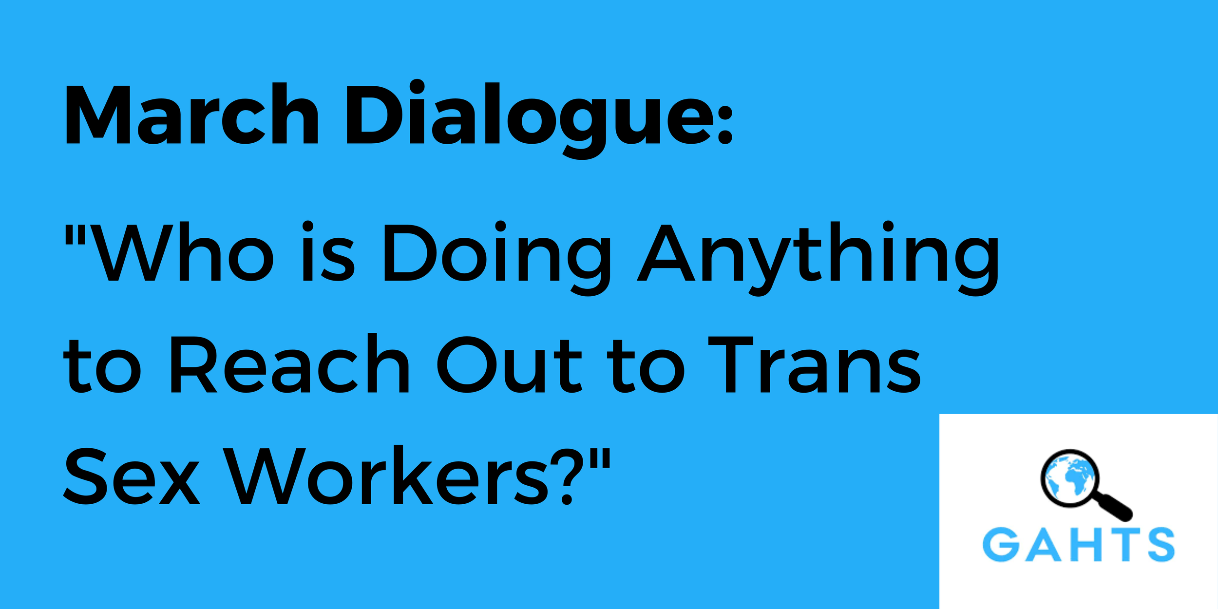 Connect, collaborate, and hear from our GAHTS members talk more about "Who is Doing Anything to Reach Out to Trans Sex Workers?" for this month's dialogue.